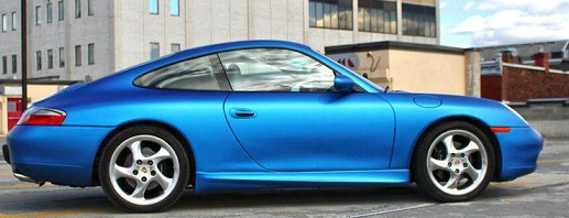 Porsche 911 v modrej matnej fólii